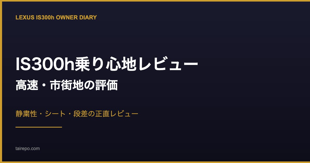 IS300hの乗り心地は「高速では快適、市街地では少し硬め」というのが正直なところです。ハイブリッドの静粛性と安定感は申し分なく、毎日の通勤でも疲れにくいと感じています。市街地の段差でのゴツゴツ感は扁平タイヤの宿命ですが、タイヤ選びや空気圧管理でかなり改善できます。